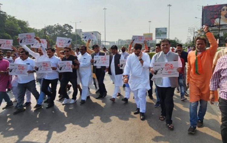 भाजपा ने कहा है कि रायपुर नगर निगम अंतर्गत तेलीबांधा क्षेत्र में नगर निगम द्वारा स्मार्ट सिटी प्रोजेक्ट फंड के माध्यम से सड़क डिवाइडर में सौंदर्यीकरण का कार्य करवाया जा रहा है। इसका आधे से अधिक कार्य पूर्ण हो चुका है परंतु इसमें स्पष्टतया भ्रष्टाचार तब उजागर हुआ जब कुछ दिन पूर्व निगम द्वारा इसका टेंडर जारी किया गया। भाजपा कार्यकर्ता बड़ी संख्या में तेलीबांधा चौक पहुंचे जहां से माना विमानतल पहुंच मुख्य चौराहे तक पैदल मार्च करते हुए महापौर और प्रदेश सरकार के खिलाफ जमकर नारेबाजी की । सभी ने हाथों में वॉल ऑफ करप्शन की तख्तियां ले रखी थी। महापौर एजाज ढेबर के खिलाफ नारे लगाते हुए भाजपा कार्यकर्ता तेलीबांधा चौक से VIP रोड चौक तक पैदल गए। वहां निगम द्वारा लगाए गए स्वागत संदेश बोर्ड और मुख्यमंत्री के चित्र के सामने भी जमकर नारेबाजी की ।