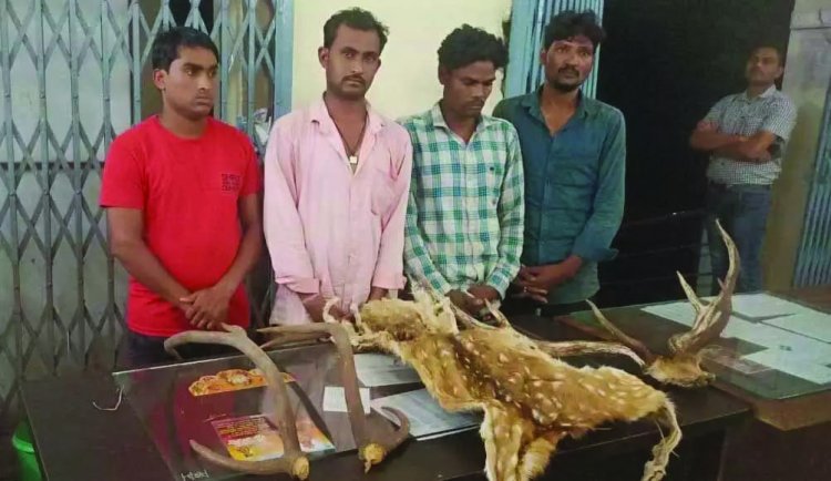 रायपुर, ShorGul.news । वन्यजीव हिरण के सिंग और खाल की तस्करी करते 4 तस्कर को गिरफ्तार किया गया है. जानकारी के मुताबिक एण्टी क्राईम एण्ड साईबर यूनिट की टीम को सूचना प्राप्त हुई कि मोटर सायकल सवार दो व्यक्ति अपने पास वन्यजीव हिरण के सिंग एवं खाल रखें है तथा ग्राम गोढ़ी से होते हुए मंदिर हसौद के रास्ते रायपुर की ओर आ रहे है। जिस पर अतिरिक्त पुलिस अधीक्षक शहर/अपराध अभिषेक माहेश्वरी, अतिरिक्त पुलिस अधीक्षक ग्रामीण नीरज चन्द्राकर एवं नगर पुलिस अधीक्षक माना कल्पना वर्मा द्वारा प्रभारी एण्टी क्राईम एण्ड साईबर यूनिट तथा थाना प्रभारी मंदिर हसौद को आरोपियों को वन्यजीव हिरण के सिंग एवं खाल के साथ रंगे हाथ गिरफ्तार करने हेतु निर्देशित किया गया। वरिष्ठ अधिकारियों के निर्देशन में एण्टी क्राईम एण्ड साईबर यूनिट तथा थाना मंदिर हसौद पुलिस की संयुक्त टीम द्वारा मंदिर हसौद क्षेत्रांतर्गत ग्राम नवागांव स्थित अंडरब्रीज के पास तस्करों को पकड़ने हेतु नाकाबंदी पाईंट लगाया गया। इसी दौरान मुखबीर द्वारा बताये दोपहिया वाहन एवं उसमें सवार 02 व्यक्तियों को आता देख टीम के सदस्यों द्वारा दोपहिया वाहन को रोकवाया गया, वाहन में सवार दोनों व्यक्तियों से पूछताछ करने पर व्यक्तियों ने अपना नाम भूपेन्द्र कुमार साहू एवं फागूराम यादव निवासी आरंग रायपुर का होना बताया गया। टीम के सदस्यों द्वारा उनके पास रखें बोरी की तलाशी लेने पर बोरी में वन्यजीव हिरण का 02 नग सिंग एवं 01 नग खाल रखा होना पाया गया। हिरण के सिंग एवं खाल के संबंध में पूछताछ करने पर उनके द्वारा अपने 02 अन्य साथी महासमुंद निवासी लिलेश साहू एवं भीषम बरिहा द्वारा उन्हें विक्रय करने हेतु हिरण के सिंग एवं खाल को देना बताया गया। जिस पर टीम के सदस्यों द्वारा प्रकरण में संलिप्त अन्य आरोपी लिलेश साहू एवं भीषम बरिहा की भी पतासाजी कर दोनों को पकड़ा गया।